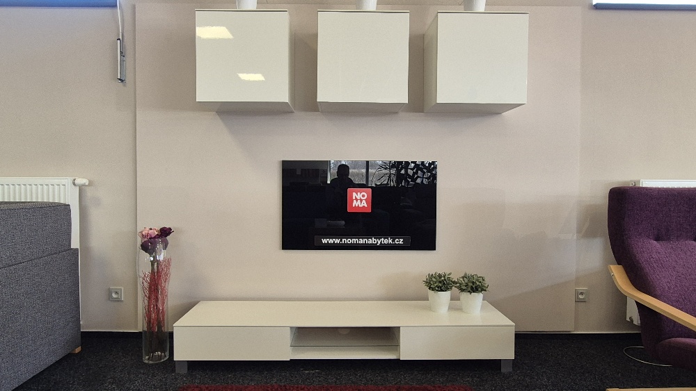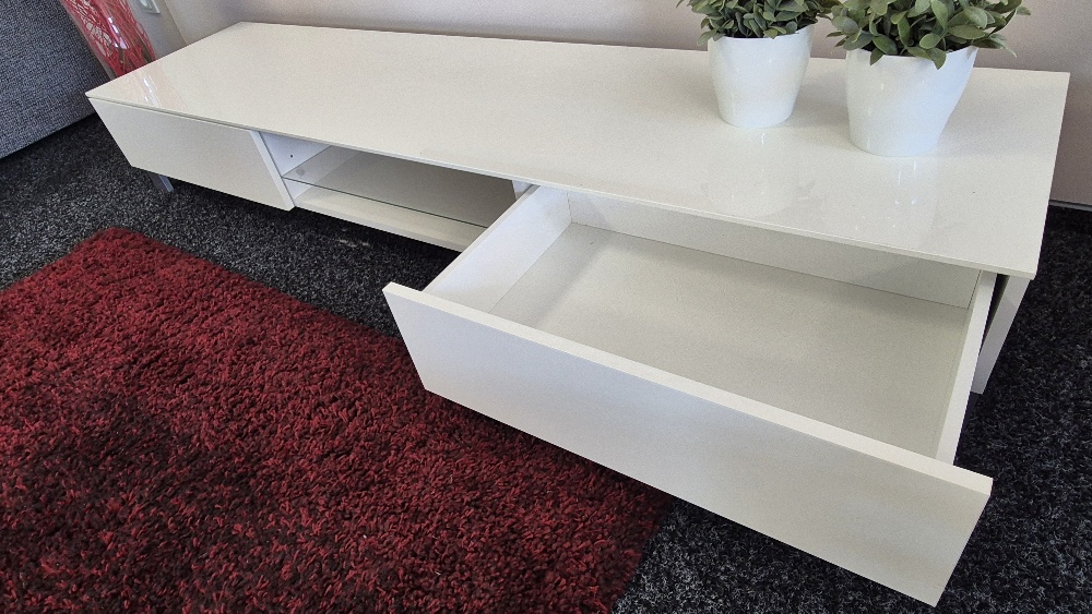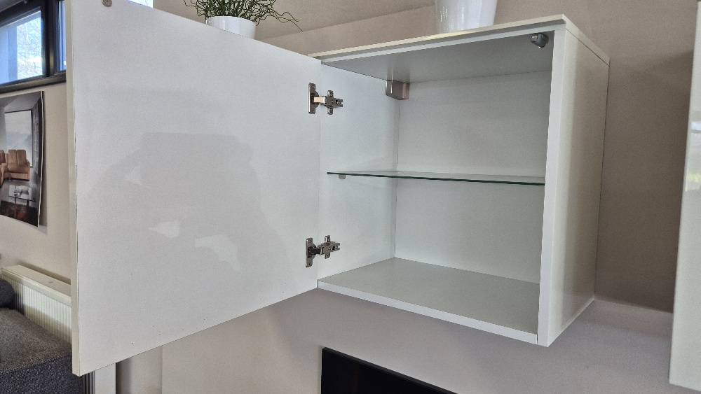Obývací stěna Lola, materiál vysoký lesk, otvíraní tip-on, skleněné policerozměr : šíře 180 cmvystaveno na prodejně v Hradci Králové