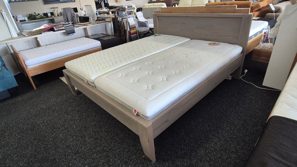 masivní dvoulůžko Erika je vyrobena ze 100% bukového masivu s možností výškově nastavení roštů. Vnitřní rozměry 180 x 200 cmvystaveno na prodejně v Hradci Králové