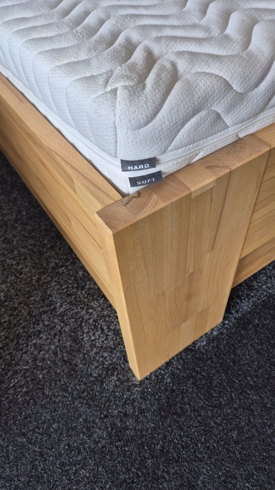 masivní dvoulůžko Laura je vyrobena ze 100% bukového masivu s úl. prostorem tloušťka čel 4 cm, možnost výškově nastavení roštů. Vnitřní rozměry 180 x 200 cmvystaveno na prodejně v Hradci Králové